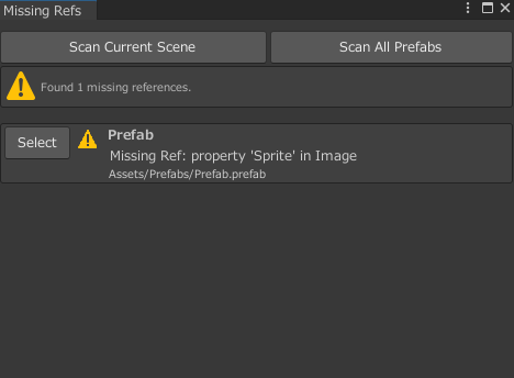 プロジェクト内の全プレハブもスキャン対象。